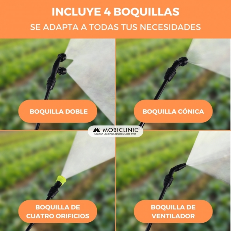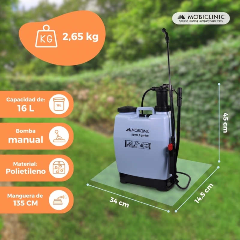 Pulverizador sulfatadora manual 16 L | Fumigación | Jardinería | Riego | Mochila | 4 boquillas | Bomba | Fumibug | Mobiclinic