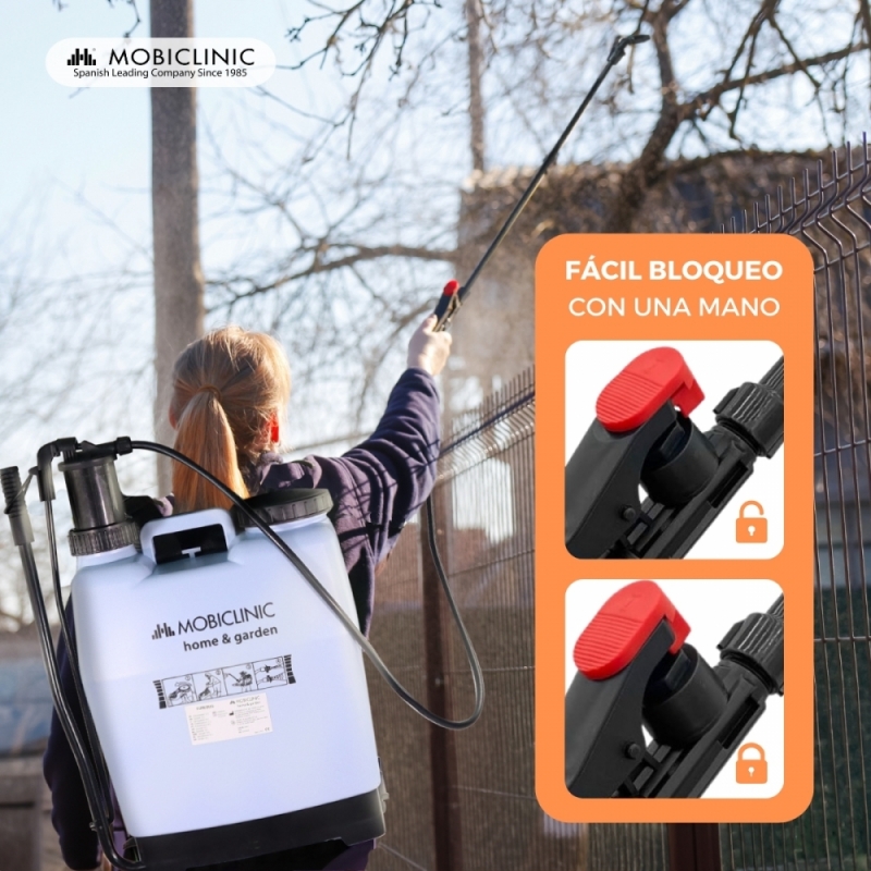 - Su diseño ergonómico y bloqueo seguro hacen que sea la elección perfecta para tareas de jardinería, reduciendo el esfuerzo físico y asegurando una aplicación sostenible y efectiva.