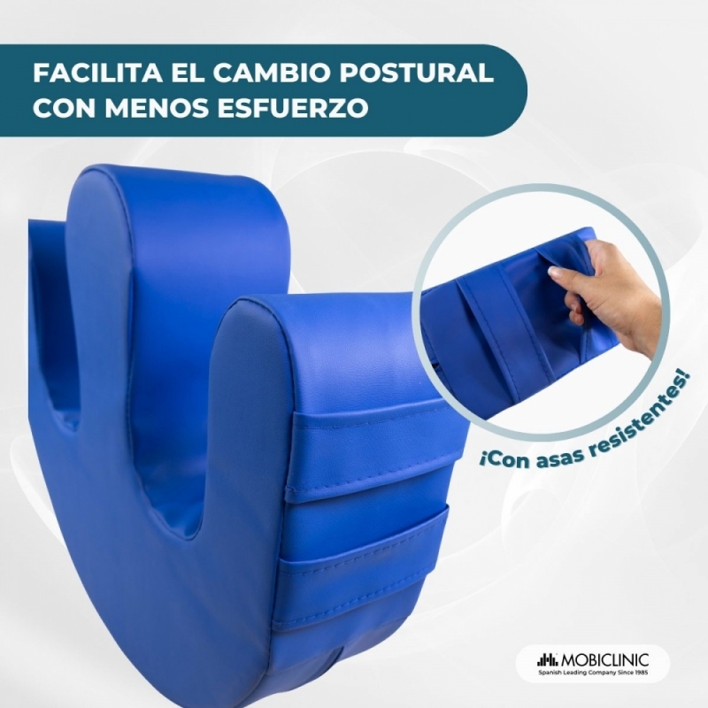 GIRA CON COMODIDAD Y SEGURIDAD: gracias a su diseño en forma de U y sus asas laterales, este cojín volteador permite reposicionar a personas encamadas de manera fácil, rápida y con el mínimo esfuerzo físico