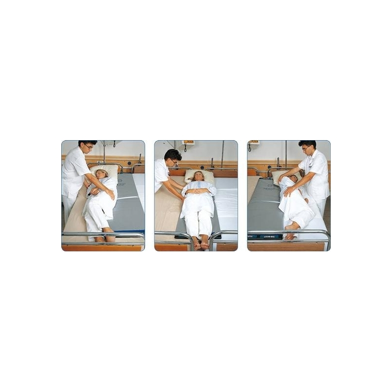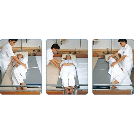 Tabla de transferencia de 178x50 cm, abatible a 89 x 50 cm. Su función principal es trasladar al paciente de forma segura y cómoda de una zona a otra. Adecuado para su uso intensivo en el hospital (radiología, quirófanos, unidades de cuidados intensivos y en todos los departamentos especiales). Evita levantar al paciente cuando lo transfieren de un lugar a otro mejorando así, las condiciones de trabajo de los mismos empleados. Características técnicas: - Núcleo interior de espuma especial de peso ligero, tela deslizante de teflón, recubierto con caja de plata. - Asas integradas en cada extremo de la tabla para mayor seguridad. - Los bordes de seguridad están fabricados con material ABS, que permiten salvar desniveles de hasta 15 cm. - Capacidad operativa máxima. - Antibacteriano. - Retardante de llama. - Revestimiento suave para la piel. - Material no contaminante para el medio ambiente. - Dispone de 3 años de garantía. - Medidas: 178 x 50 cm. Abatible a 89 x 50 cm. - Peso: 2.7 Kg. - Peso máximo soportado: 150 Kg. Forma de uso: 1º Gire al paciente sobre un lado y deslice el tablero por debajo del cuerpo. Luego, devuelva al paciente a su posición original. 2º Empuje con cuidado al paciente desde el hombro y la cadera, sin aplicar fuerza, y transfiéralo. 3º Gire al paciente sobre un lado. Retire el tablero empezando por los pies. Nos gusta por: - Simplifica el trabajo a los cuidadores - Segura - No requiere de gran esfuerzo - Fácil de limpiar