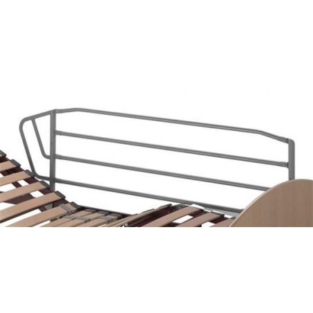 - Columnas con alma de acero revestidas en material termoplástico. - Cuatro barras de acero inoxidable de diámetro 20 x 1,5 mm. - Sistema de bloqueo automático. - Longitud total con asas: 153 cm. - Altura al lecho - elevadas: 46 cm. - Ancho total de la cama con barandillas: 102 cm (para cama de 90 cm).