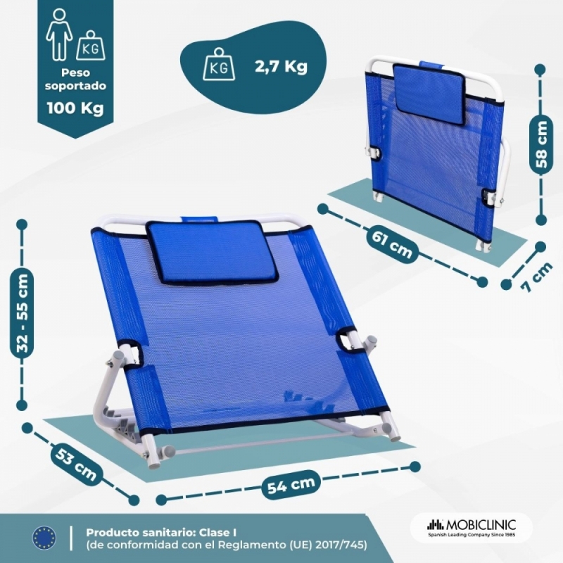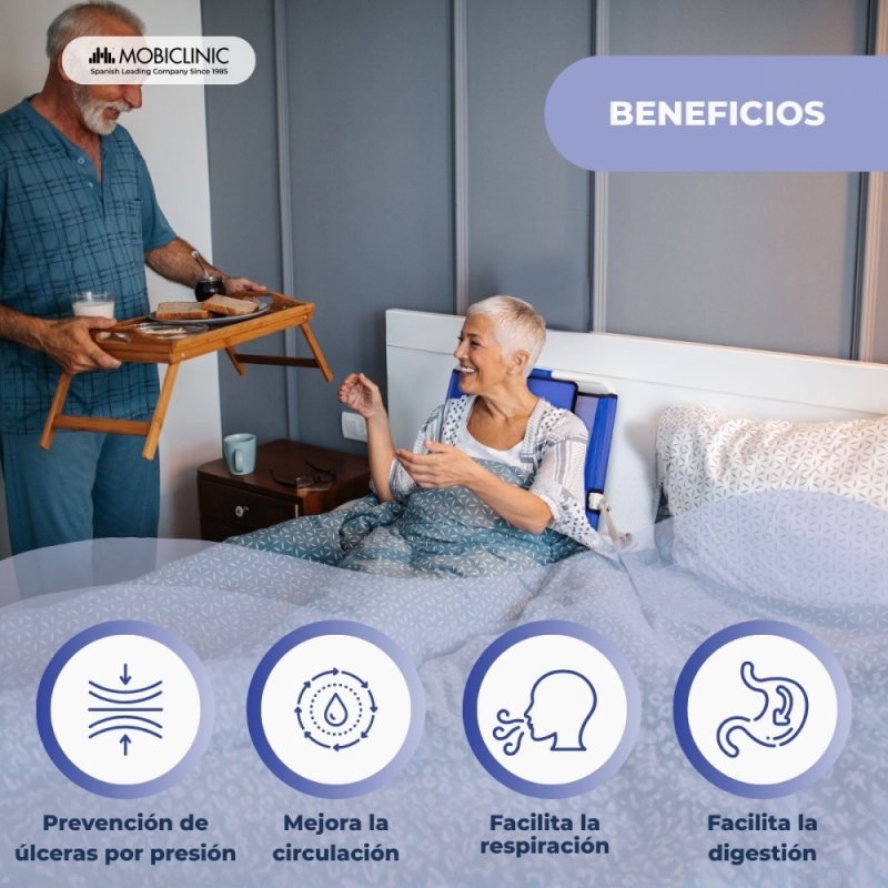 Se trata de un incorporador de espalda ajustable que ofrece una inclinación desde 45º hasta 60º, permitiendo así a las personas encamadas realizar actividades cotidianas.