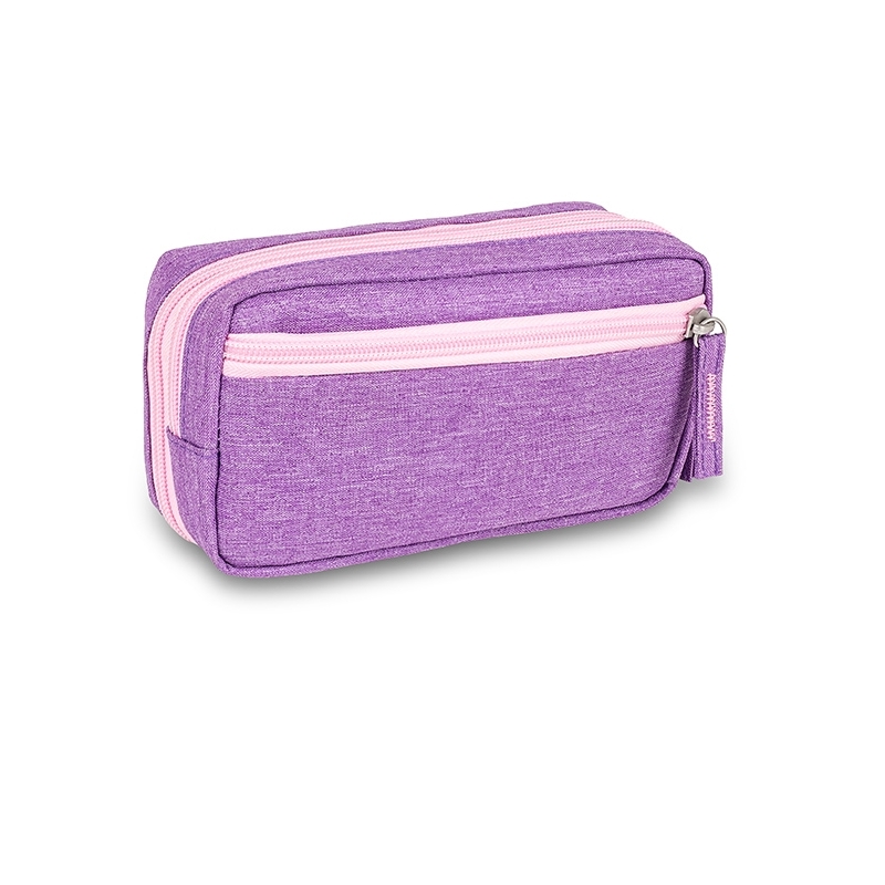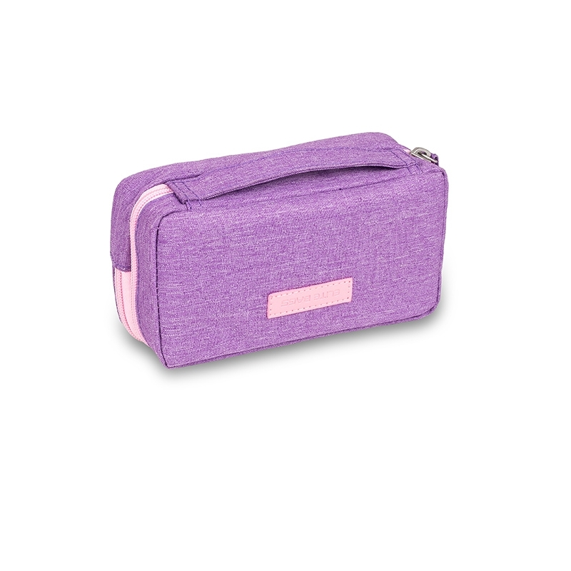 Estuche isotérmico para el kit del diabético con un exclusivo diseño moderno y elegante, en tela de alta calidad color morado, que permite transportar de manera óptima todos los accesorios necesarios. Este estuche para diabéticos está compuesto de varios compartimentos como bolsillo de red, bolsillo con velcro, elástico para las plumas, elástico para el lector de glucosa, y un bolsillo isotérmico para mantener el frío durante el verano.