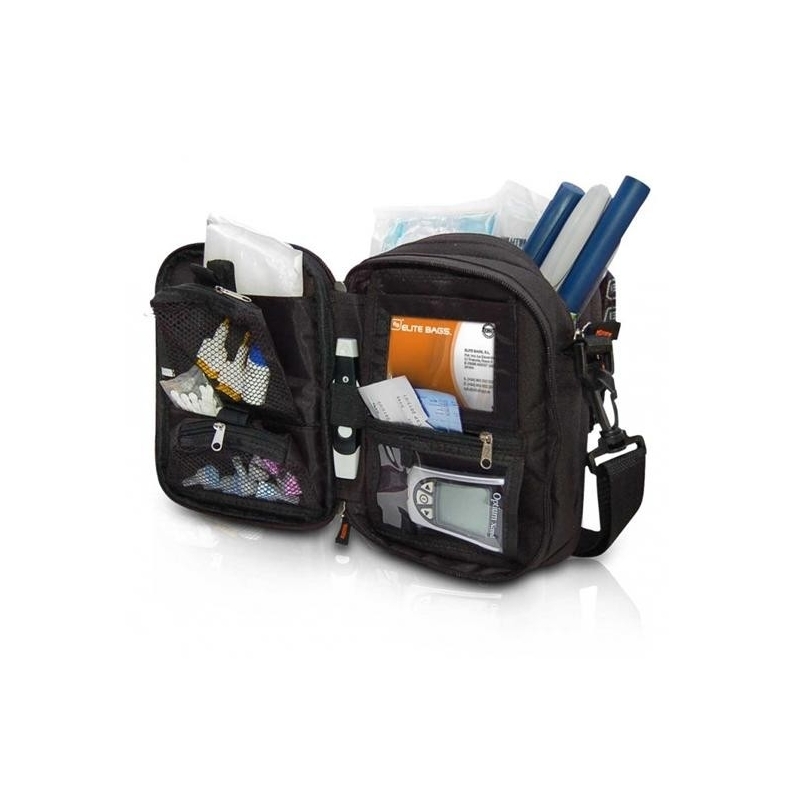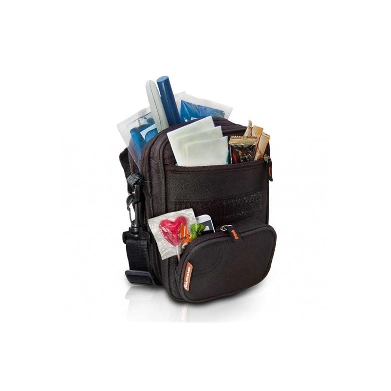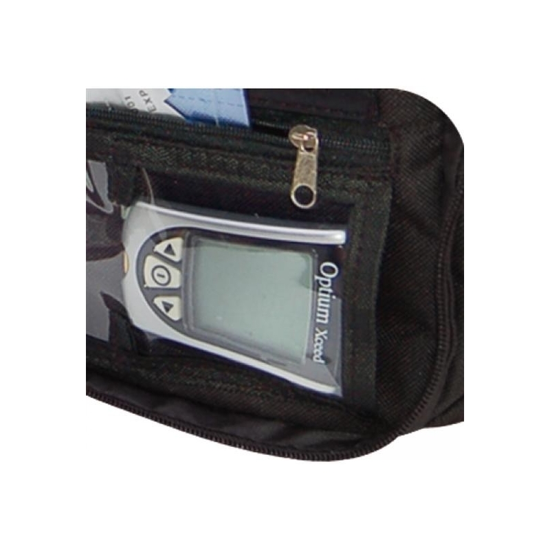 Bandolera isotérmica diseñada para albergar todo el material necesario en el tratamiento de la diabetes en sus viajes o escapadas. Su sistema multidepartamental permite al usuario alojar y diferenciar fácilmente tanto los instrumentos de medición (glucómetro, tiras reactivas, lancetas) como los bolígrafos precargados de insulina, e incluso los objetos personales. Existiendo un espacio diferenciado destinado a cada uno de los materiales descritos anteriormente.