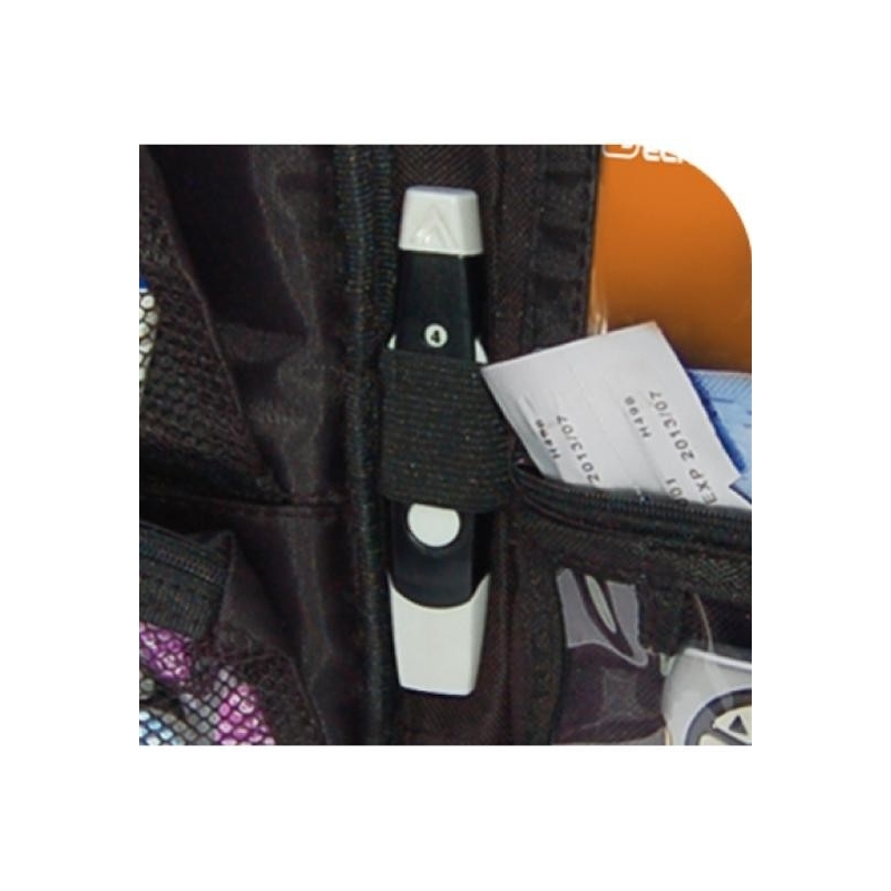 -Bolsillos de rejilla internos para las lancetas y tiras reactivas