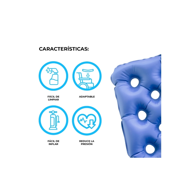 Si en tu familia o consultorio médico hay un enfermo inmovilizado, un anciano con poca movilidad o una persona mayor que pasa largos periodos de tiempo sentada o en una sola posición éste asiento hinchable puede ser el artículo ortopédico que les ayude a evitar y menguar las molestias proporcionándoles alivio, soporte y bienestar en personas operadas de hemorroides, postradas por tiempo prolongado o en el post-parto.