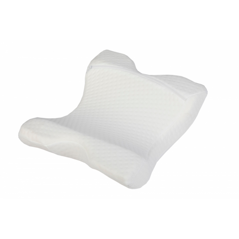 Gracias a su arco inferior, se puede insertar el brazo por debajo de la cabeza a la hora de dormir, de forma que mejora la postura y disminuye la tensión en las lumbares y cuello.