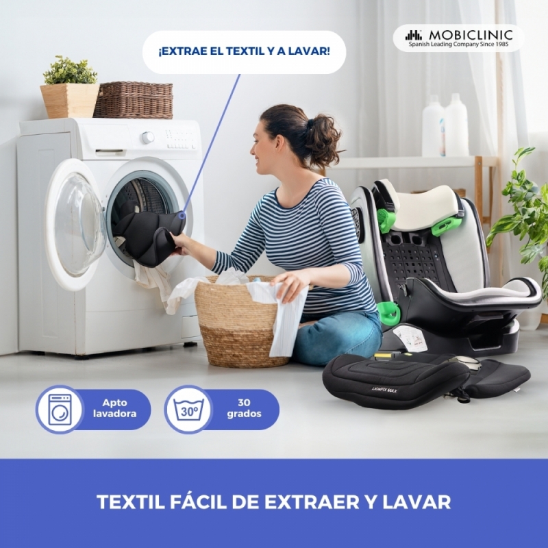 FÁCIL DE LIMPIAR: Todo el material textil de la silla Lionfix Max está fabricado en poliéster desenfundable y lavable, por lo que puede extraerse por completo para el lavado después de un uso prolongado.