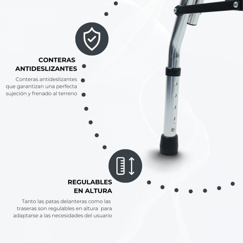 SEGURO: su estructura ligera y resistente ofrece una estabilidad optima, lo que garantiza la mayor seguridad en los desplazamientos de las personas mayores.