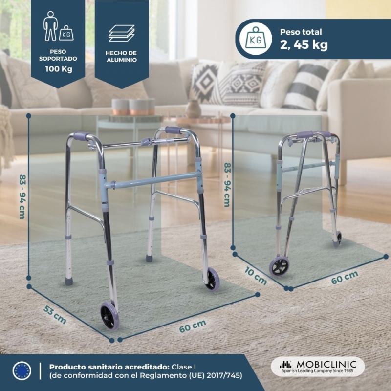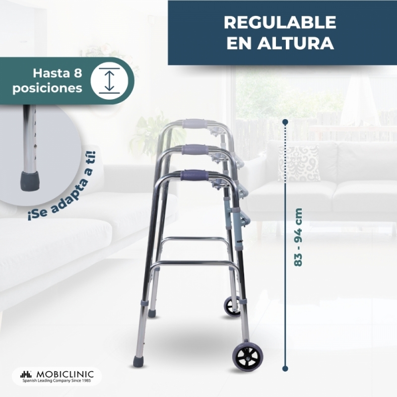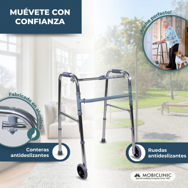 Andador para adultos | Aluminio | Plegable | 2 ruedas | Regulable en altura | Capitel | Mobiclinic
