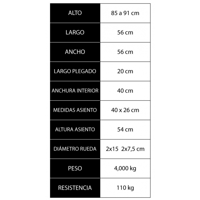 • Diámetro rueda: 2x15 y 2x7,5 cm