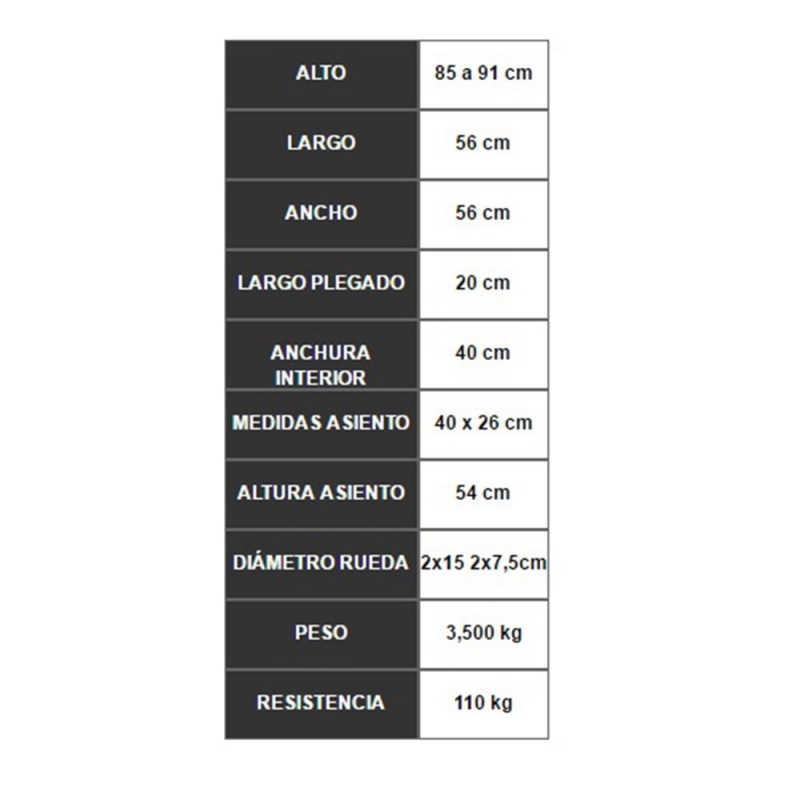 • Diámetro rueda: 2x15 y 2x7,5 cm
