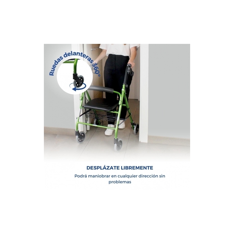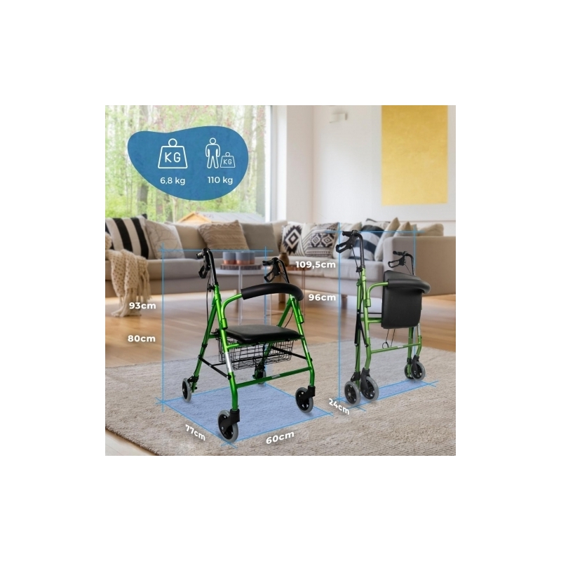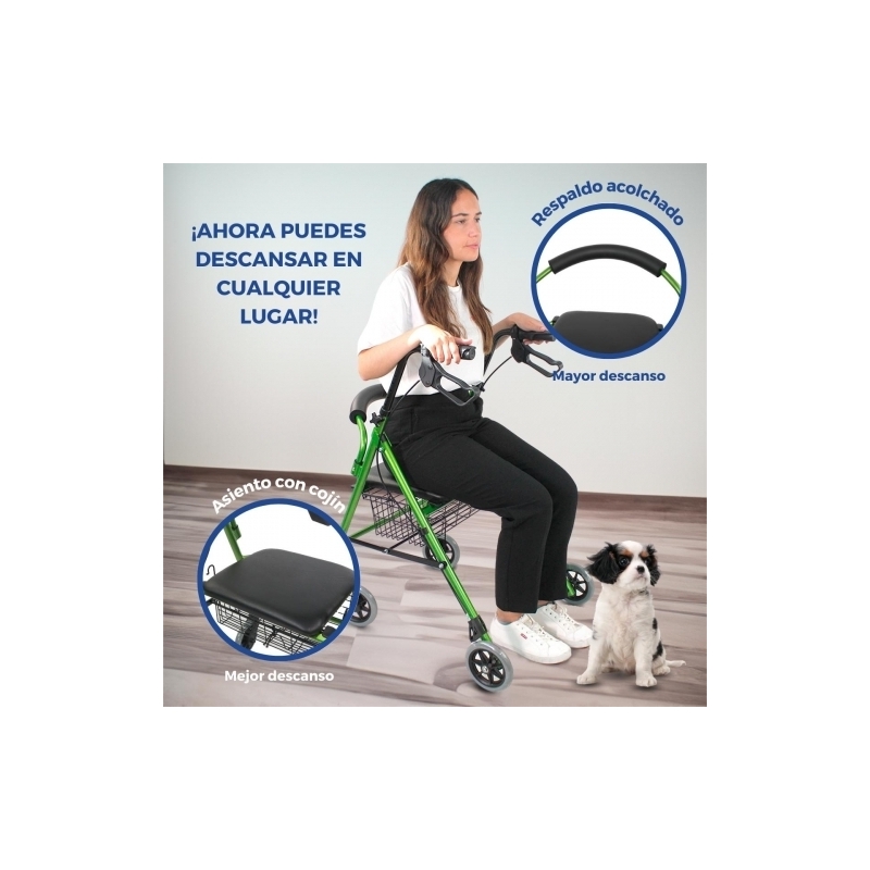 Pack Escorial Plus | Andador plegable | Verde | Aluminio | Frenos en manetas | Cojín antiescaras | Viscoelástico | Mobiclinic