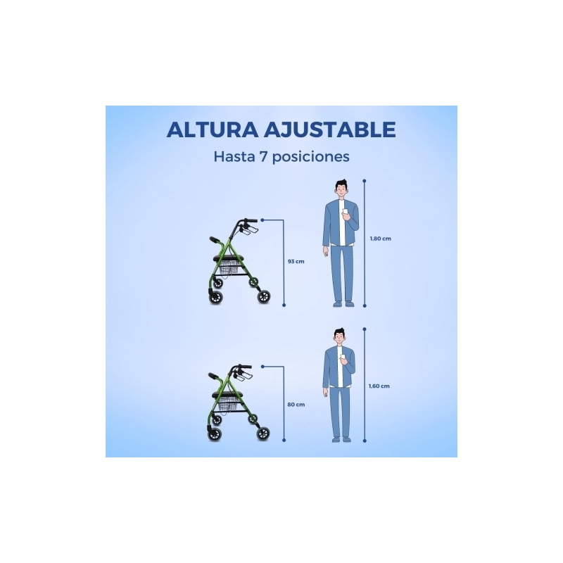 REGULABLE: para garantizar la máxima adaptación y comodidad en su uso, este andador se regula dependiendo de la altura del usuario.