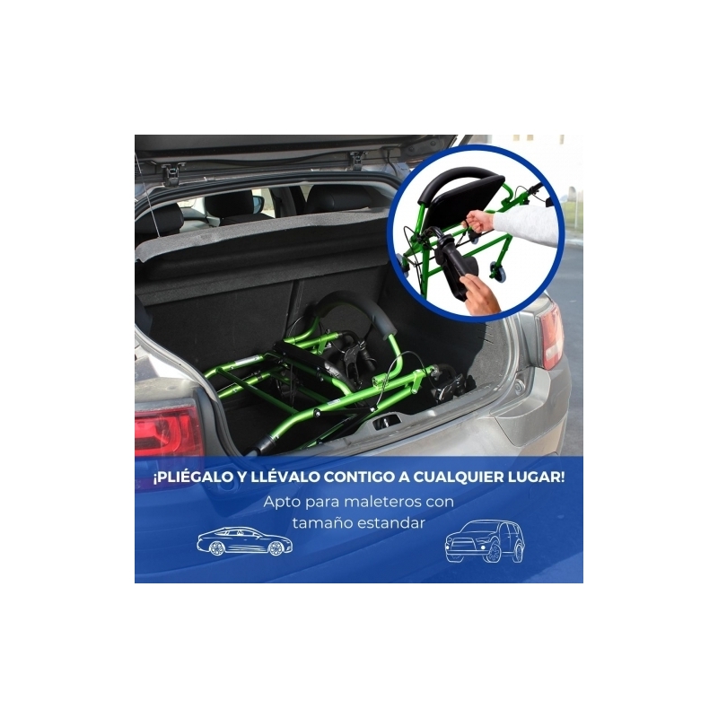 PUERTAS Y MALETERO: este andador tiene un ancho total de 60 cm, por lo que puede pasar por puertas de ancho estándar de 62.5 cm. Además como este andador plegado mide sólo 24.5 cm, es bastante fácil de transportar. Asegúrese de las medidas de sus puertas y vehículo para comprobar que le viene bien.