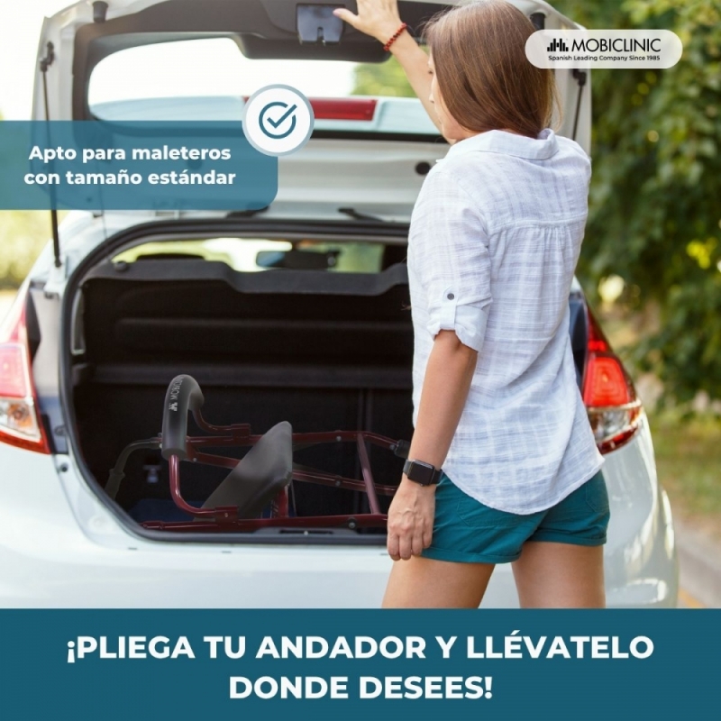 PUERTAS Y MALETERO: Este andador tiene un ancho total de 63,3 cm, por lo que puede pasar por puertas de ancho estándar de 72.5 cm. Además como este andador plegado mide sólo 47 cm, se puede transportar en el maletero de un vehículo tipo Volkswagen Polo. Asegúrese de las medidas de sus puertas y vehículo para comprobar que le viene bien.