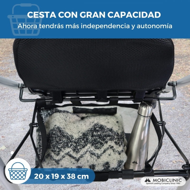 CÓMODO: el respaldo desmontable de este andador para adultos al igual que el asiento están envueltas con una suave espuma para conseguir la máxima comodidad, además, tiene una amplia cesta debajo del asiento y uno prácticos frenos por presión