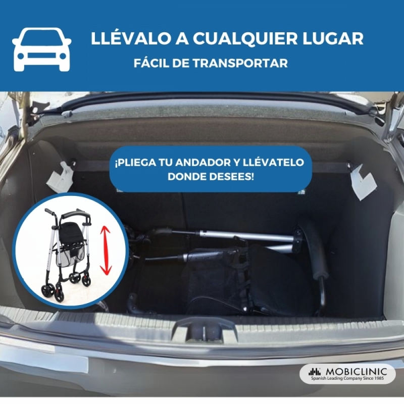 PLEGABLE: andador plegable fácil para su guardado y transporte en cualquier momento