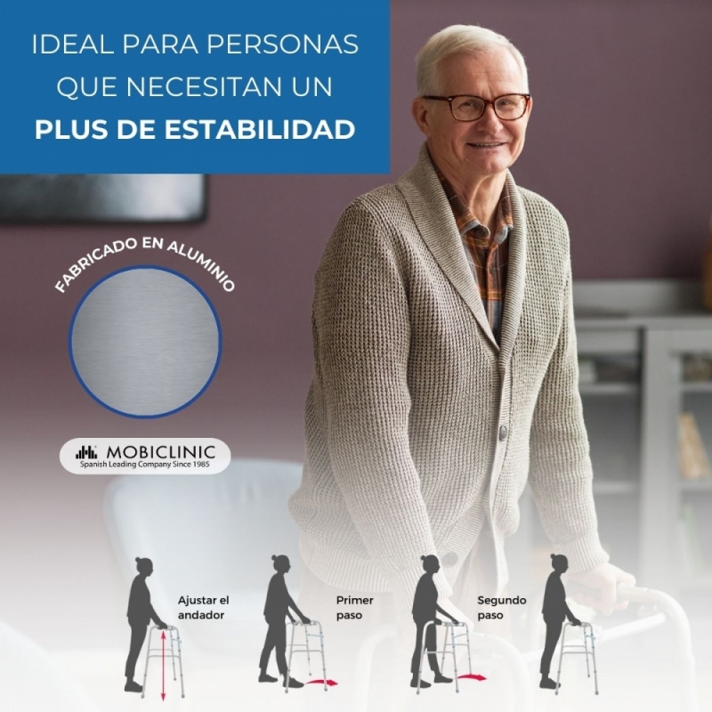 Andador para adultos | Aluminio | Plegable | Sin ruedas | Columna | Mobiclinic