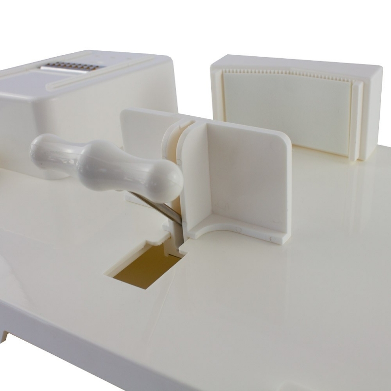 MANEJABLE: Este sistema de preparación de alimentos contiene ventosas para evitar que se deslice cuando la usan personas con dificultad en el agarre o que sólo pueden usar una mano