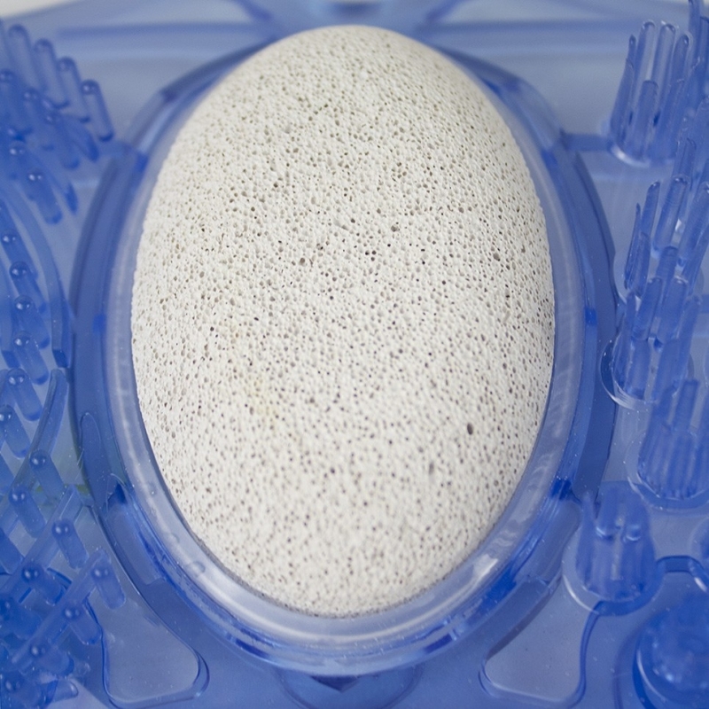 Este Lavapiés es perfecto para lavarse los pies sin tener que agacharse, cuenta con dos tipos de cerdas, unas más duras y otras más blandas y suaves que se pueden intercalar según las necesidades. Y en el centro incorporada una pieza de piedra Pómez para exfoliar suavemente y suavizar los pies.