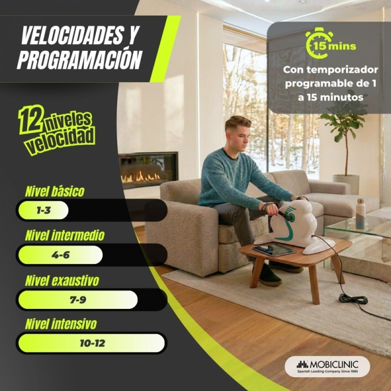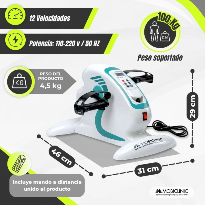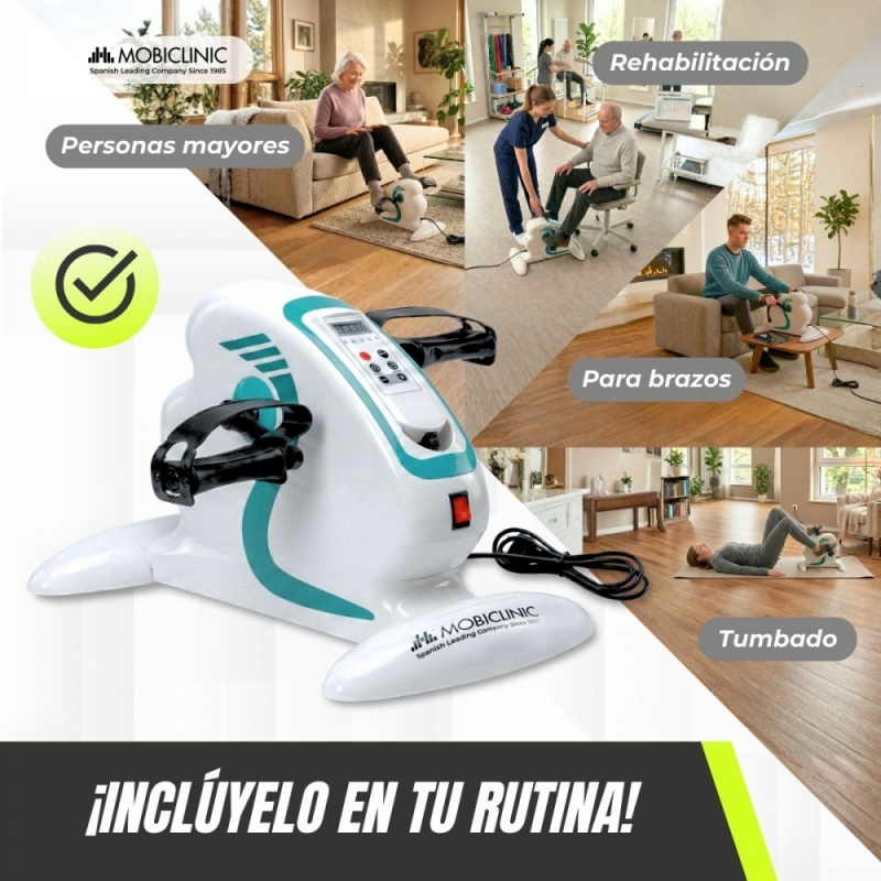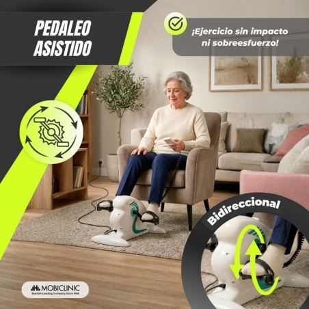 El pedalier eléctrico Mobiclinic está diseñado para mejorar la movilidad, estimular la circulación y mantener la actividad física de forma cómoda y segura. Gracias a su sistema de pedaleo asistido motorizado, permite realizar ejercicio sin impacto y sin esfuerzo excesivo, siendo una solución ideal para personas mayores, procesos de rehabilitación o usuarios que buscan mantenerse activos desde casa.