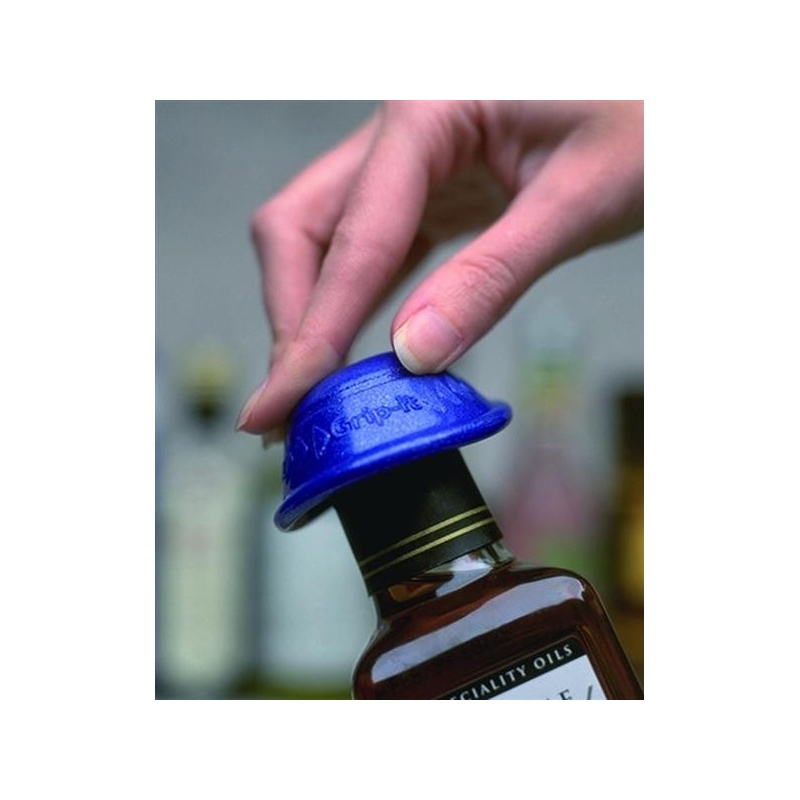 Abrebotellas fabricado en silicona con forma cónica para la apertura de reciepientes de forma sencilla y sin realizar esfuerzo. Su utilidad hace que sea adecuado para personas con debilidad en los miembros superiores o artritis.