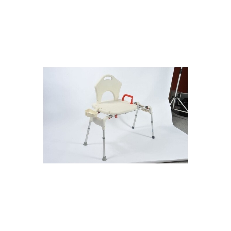 Con este banco la persona con movilidad reducida o limitada se sienta y se desliza al centro de la bañera sin necesidad de levantarse.