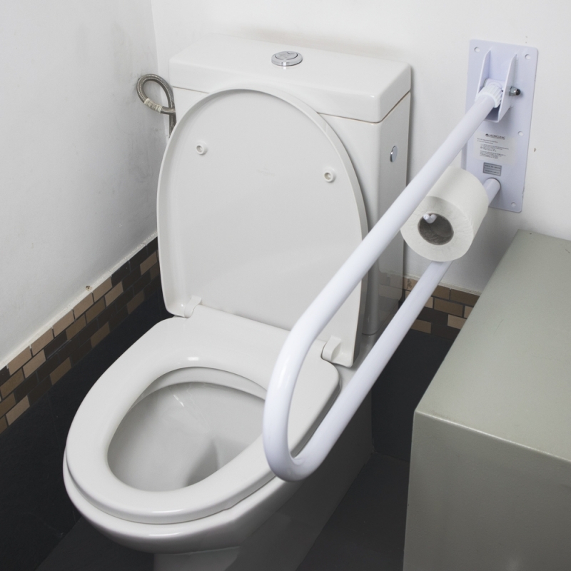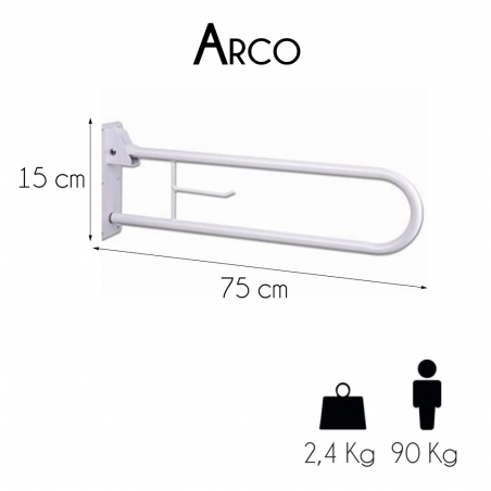 Barra abatible baño | Soporte para papel | Doble barra de seguridad | 80 cm | Arco