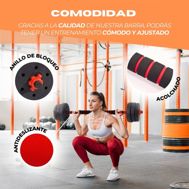 MÁS CÓMODA Y SEGURA: La barra antideslizante recubierta con material acolchado facilita un entrenamiento cómodo y ajustado con un mejor agarre. Además, el cambio entre pesas es seguro y éstas contienen un recubrimiento de alta calidad resistente a las caídas y la fricción.