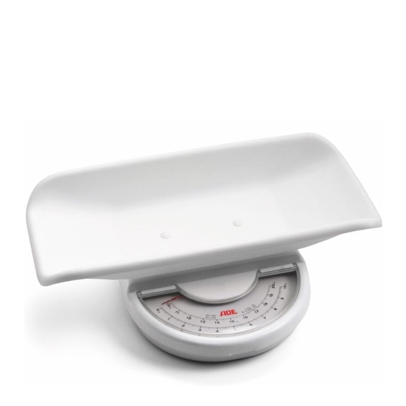 Báscula para bebés y niños pequeños de uso rápido: indicación clara del peso mediante dos agujas indicadoras rojas giratorias. Robusta y fácil de manejar, con carcasa metálica, para uso general y también para trabajadores del campo en situaciones rurales.