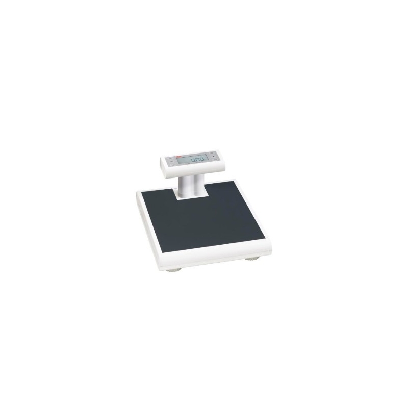 La pantalla giratoria permite una fácil lectura desde el lado del paciente y del usuario. La báscula funciona por red y baterías.