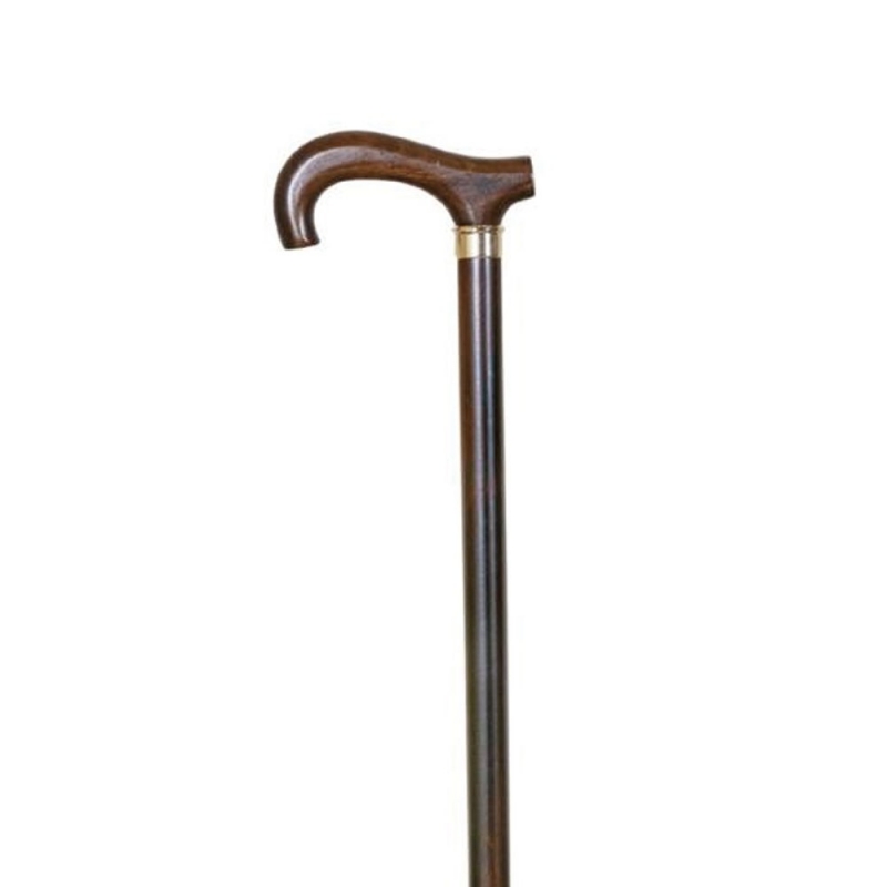 Esta muletilla de color marrón está fabricada en haya con el puño derby.