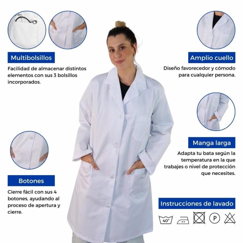 Gracias a su disponibilidad tanto para hombre como para mujer en hasta seis tallas diferentes, se trata de una bata completamente multifuncional, ya que puede ser empleada por médicos, enfermeros, farmacéuticos, veterinarios, esteticistas o en laboratorios. Incluso, es una prenda cómoda cuyo uso puede trasladarse a la cocina u otras actividades artísticas.