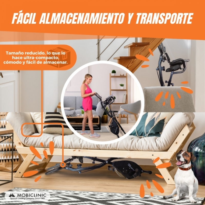 PLEGABLE: el diseño plegable y el respaldo abatible de la bicicleta EVEREST, te permite realizar tu entrenamiento en el lugar que desees ya que puedes transportarla fácilmente y puedas almacenarla sin apenas utilizar espacio.