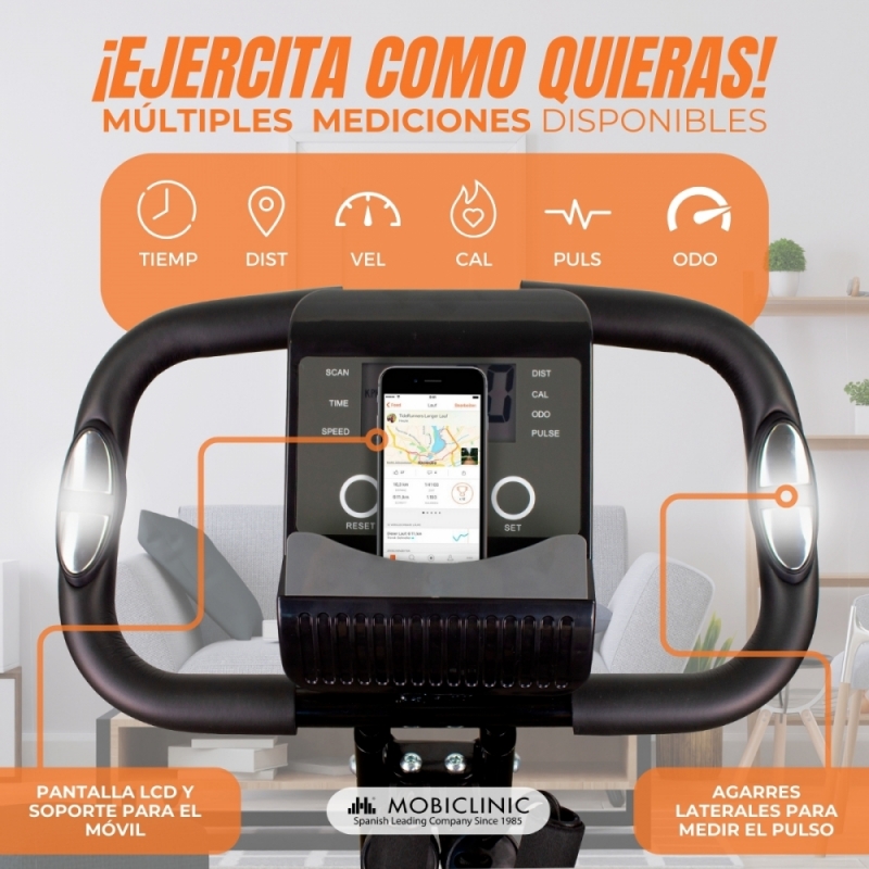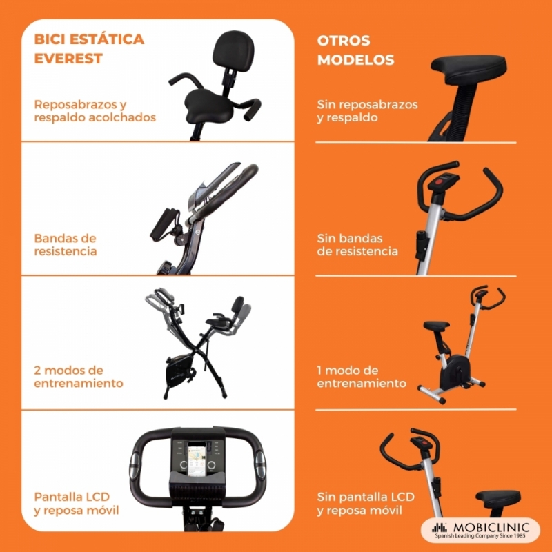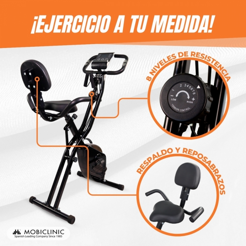 Bicicleta estática plegable| 8 resistencias regulables| Pantalla LCD| Asiento regulable 4 posiciones | EVEREST | Mobiclinic