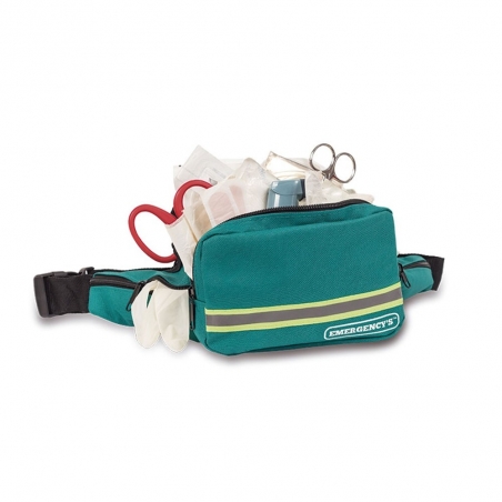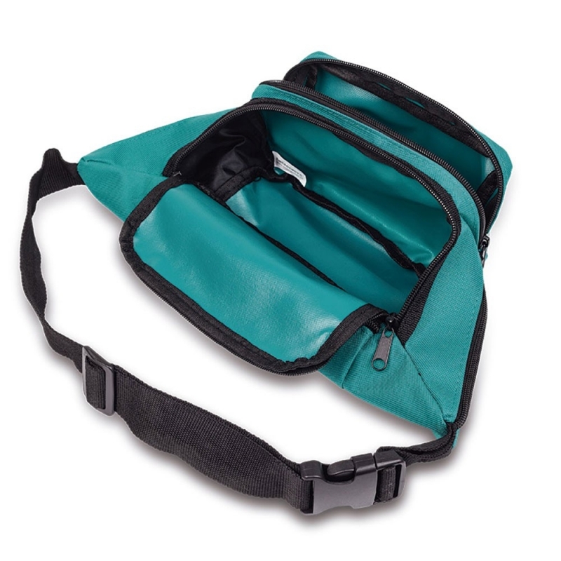 Esta riñonera botiquín verde es cómoda y ligera, perfecta para transportar el botiquín de primeros auxilios. La riñonera cuenta con un cuerpo principal diáfano para albergar el material más voluminoso.