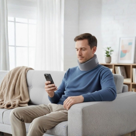 Elemento necesario para inmovilizar la columna cervical en casos de politraumatismos, fracturas o luxaciones de la misma, hernias de discos cervicales o cervicoartrosis; con sistema de cierre velcro en los extremos.