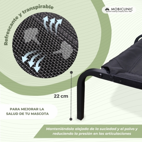 Cama elevada para mascotas | Aislante | 125 x 71 x 22 cm | Máx. 60 kg | Ligera | Resistente | Negra | Cleo | Mobiclinic