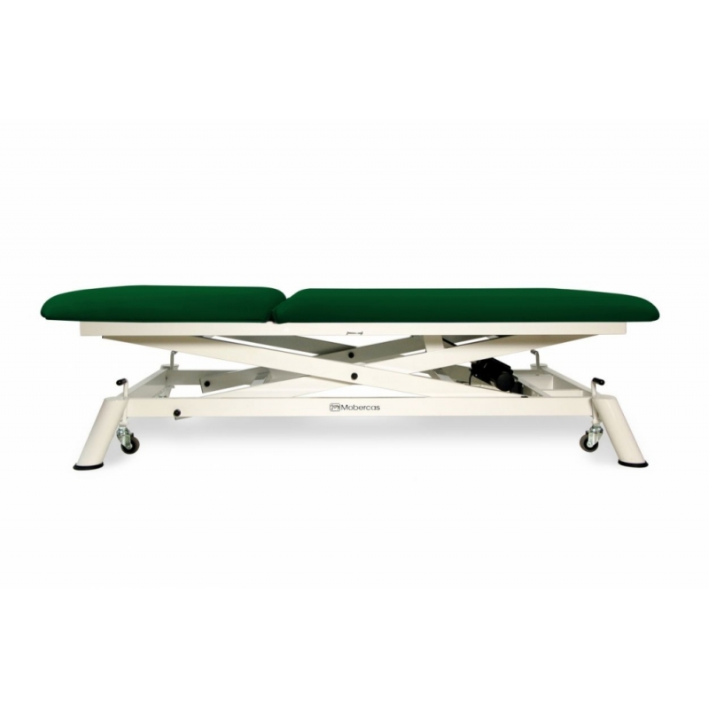 Camilla eléctrica Bobath tipo tijera con subida recta sin desplazamiento lateral, de 2 secciones y con ruedas escamoteables. Medidas de 190x100.