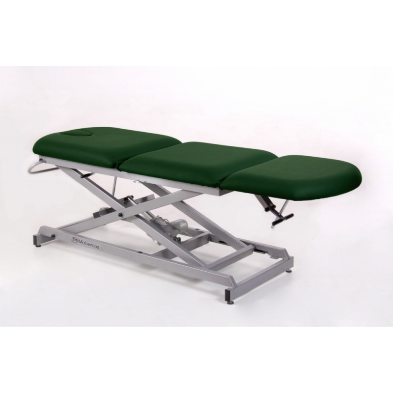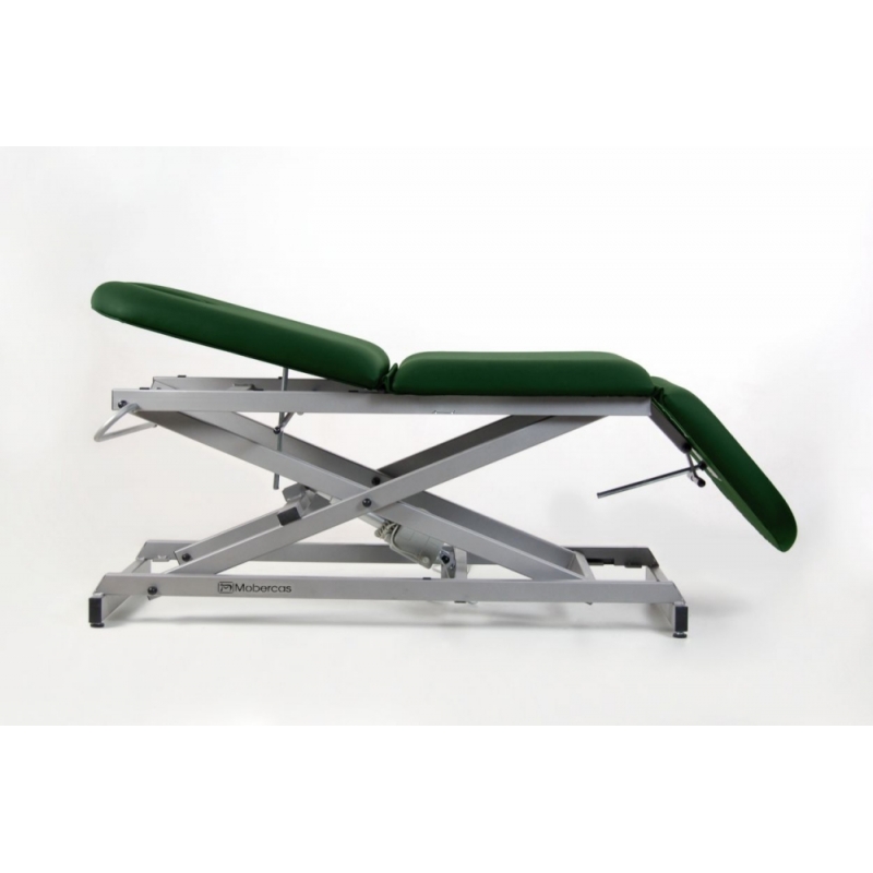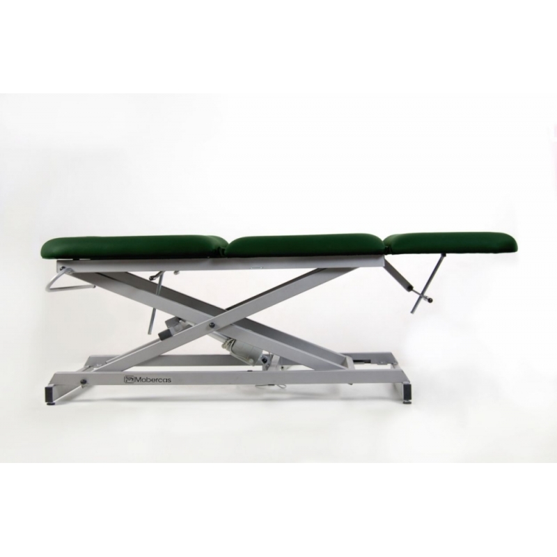 Camilla eléctrica tipo sillón de 3 secciones con subida recta sin desplazamiento lateral, portarrollos y tapón facial.