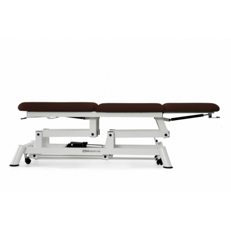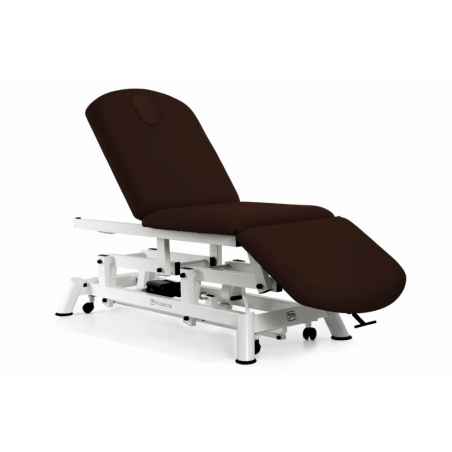 Camilla eléctrica tipo sillón de 3 secciones con portarrollos, tapón facial y ruedas escamoteables.