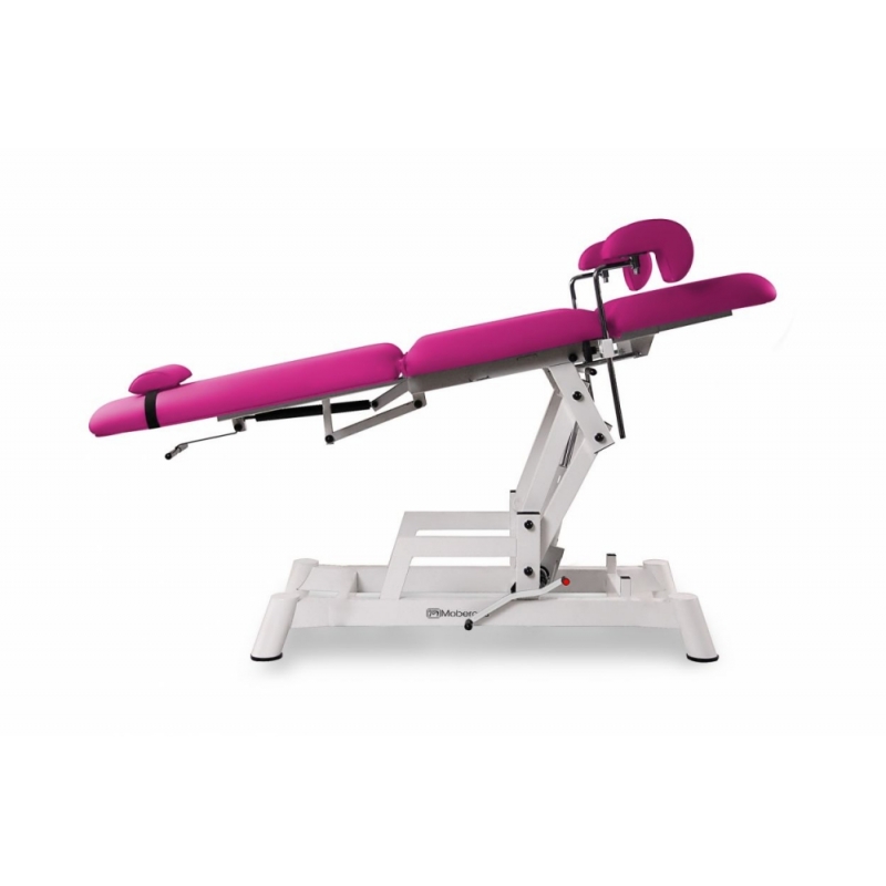 Sillón hidráulico tipo camilla de 3 secciones con regulación de altura motorizada.