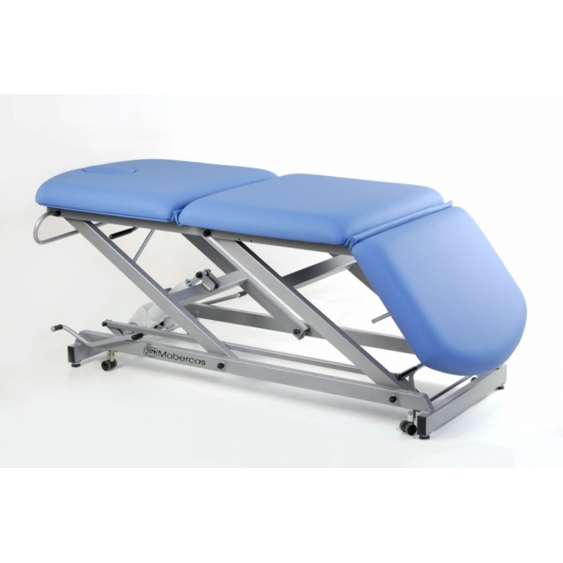 Camilla hidráulica tipo sillón de 3 secciones con portarrollos, tapón facial y ruedas escamoteables.