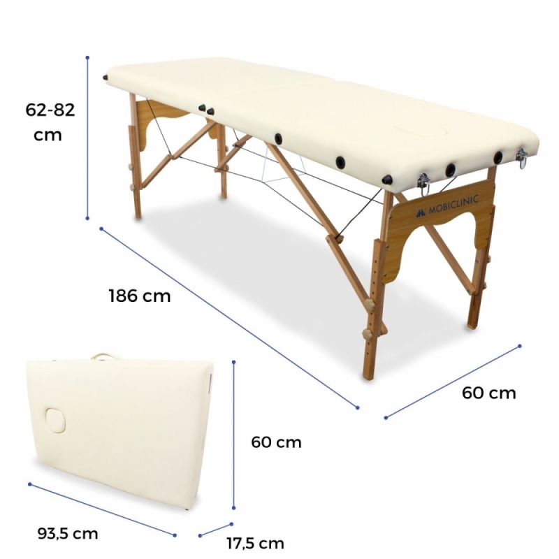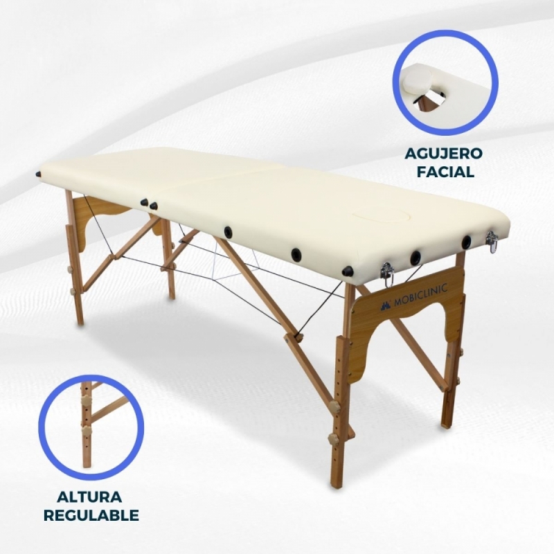 Camilla plegable | Madera | Portátil |180x60 cm | Masaje | Crema | CM-01 BASIC | Mobiclinic