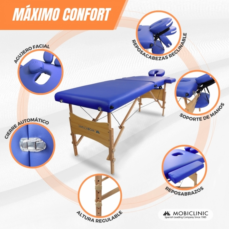 CÓMODA: esta camilla de masaje cuenta con un tapizado en polipiel muy elegante y agradable al tacto con la piel.