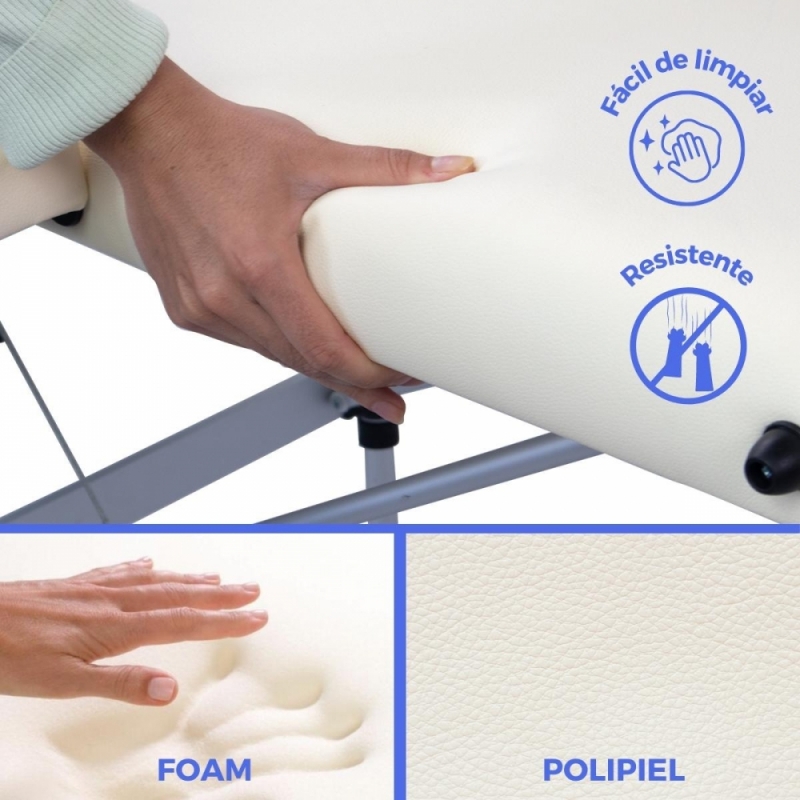 La camilla de masajes es regulable en altura a través de las patas, habiendo varios niveles para adecuarlo al que te resulte más cómodo.