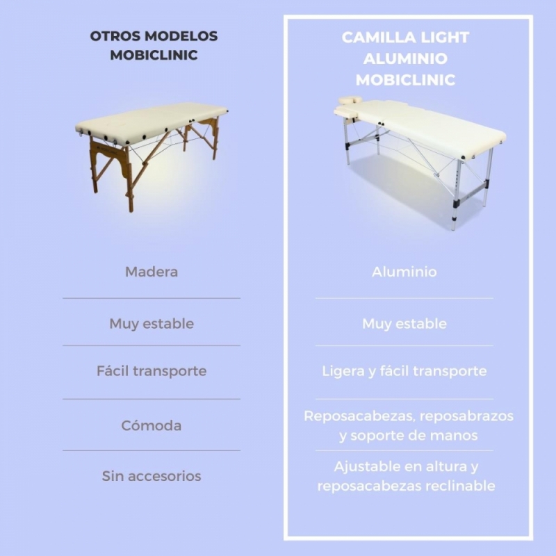 Camilla de masaje plegable | Reposacabezas | Portátil | Aluminio | 186x60 cm | Crema | CA-01 Light | Mobiclinic