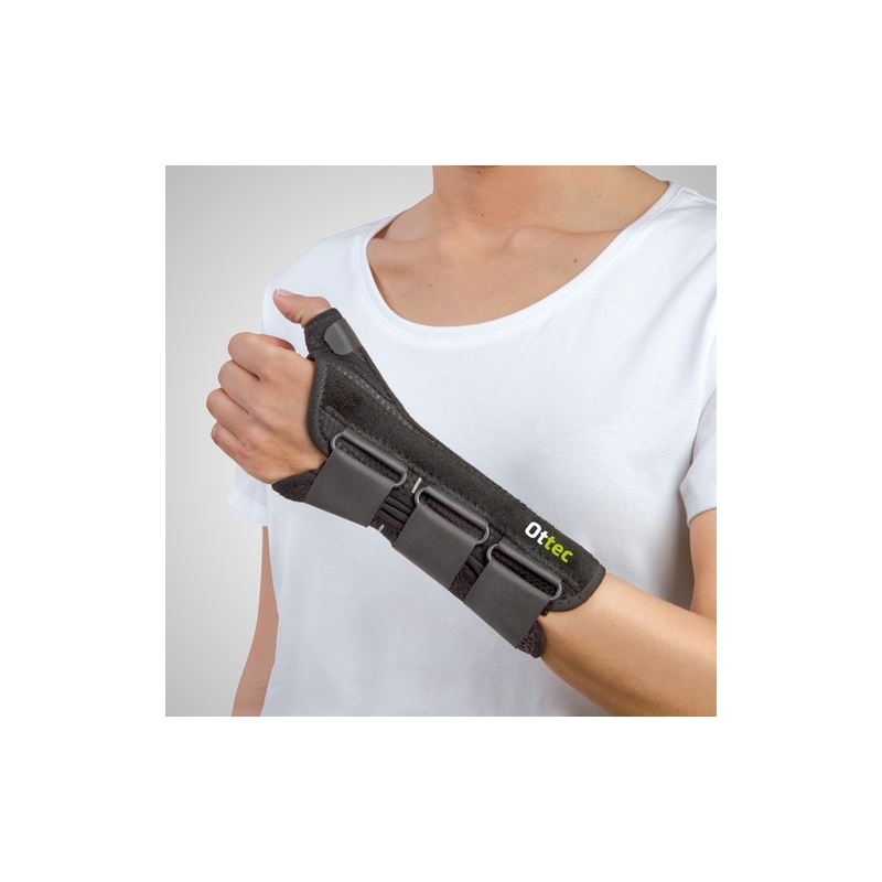 Certificado Öko-Tex Standard 100: etiqueta ecológica textil que garantiza la ausencia de sustancias perjudiciales para la salud. Tratamiento Thermy-Tex antibacterial: inhibe el crecimiento de la bacteria causante del mal olor, la formación de hongos y absorbe el sudor.Inmovilizadora de muñeca con férula palmar de aluminio conformable y extraible con juste individualizado. Con férula abductora de aluminio conformable estabilizadora de la articulación de trapeciometacarpiana de ajuste individualizado.