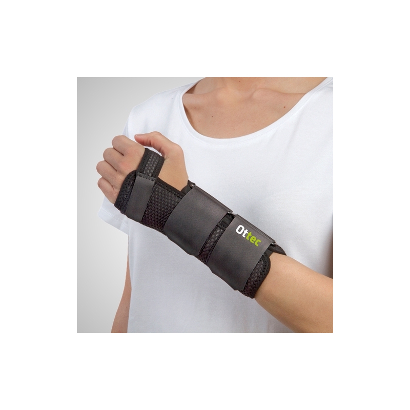 Inmovilizadora de muñeca fabricada con Termotejido: soporte térmico, elástico y extremadamente transpirable.
